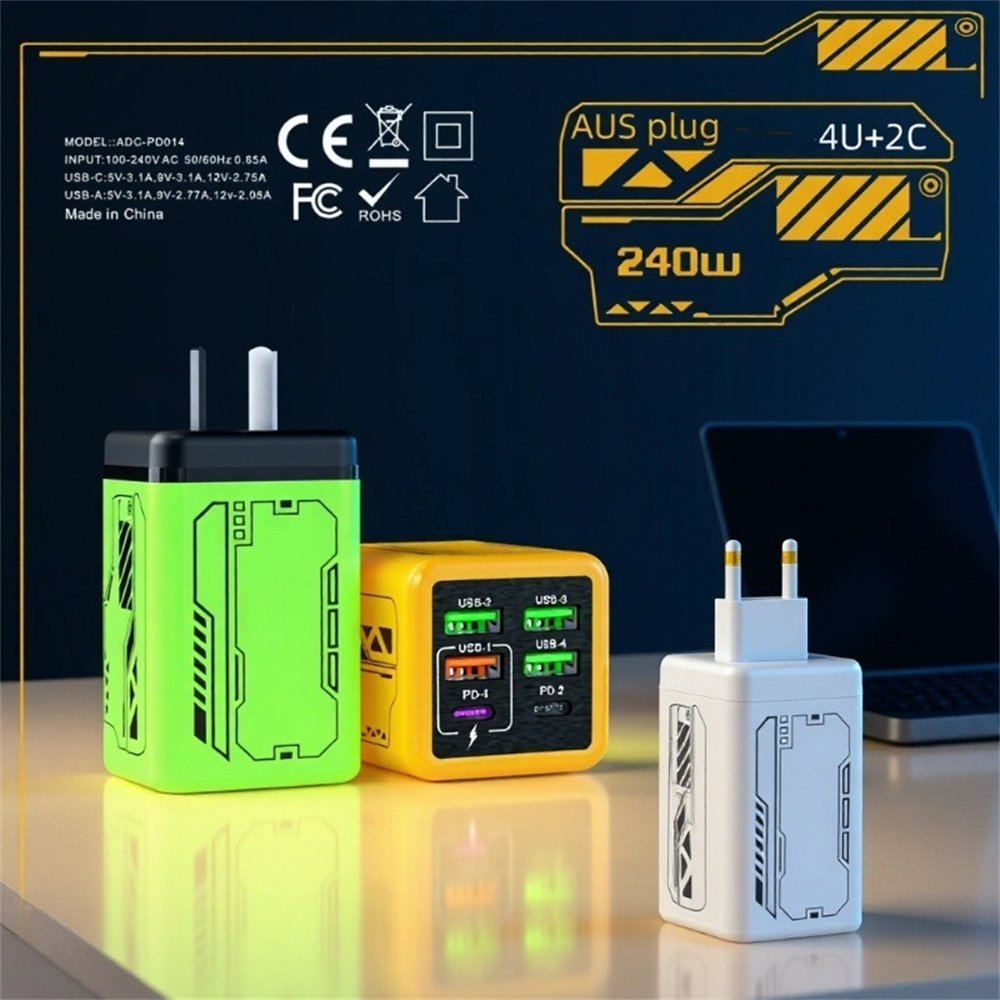 The product has 6 different sockets, The comprehensive socket power is 240W, the power of each socket is different,please choose the appropriate socket when using