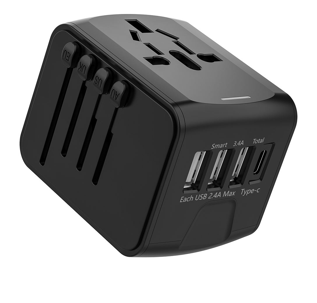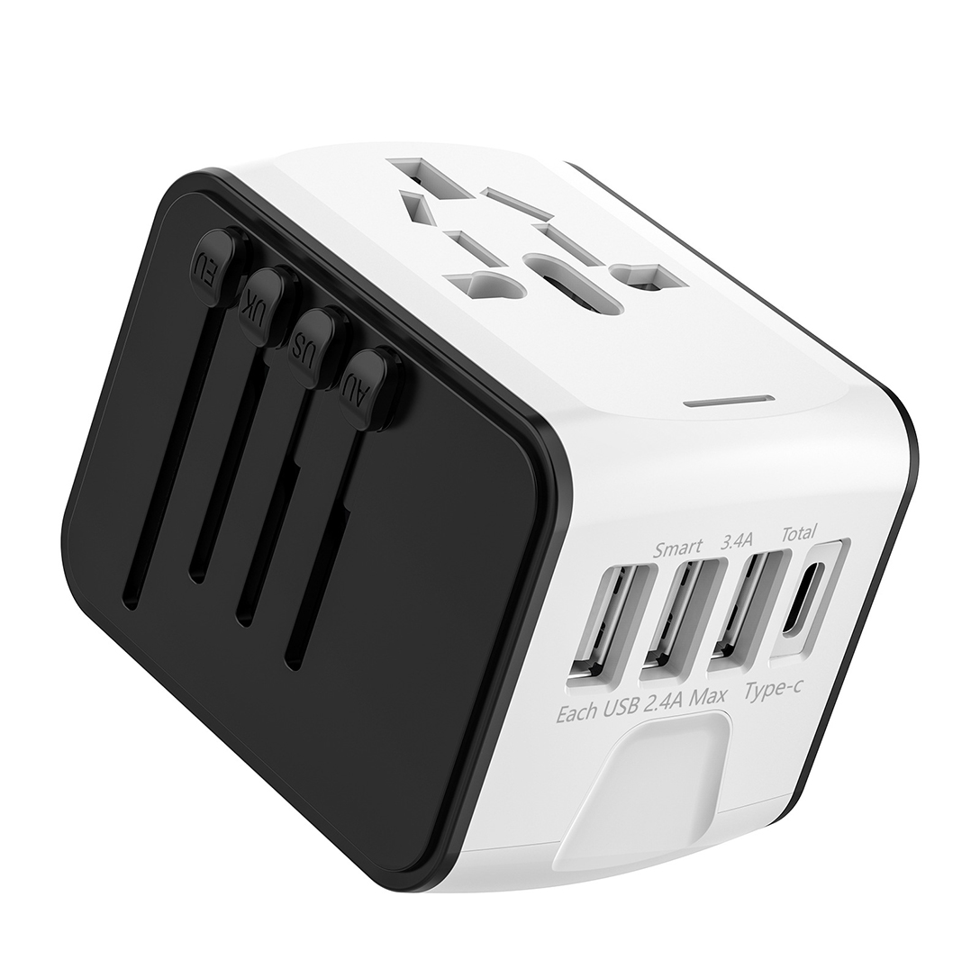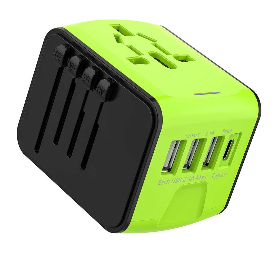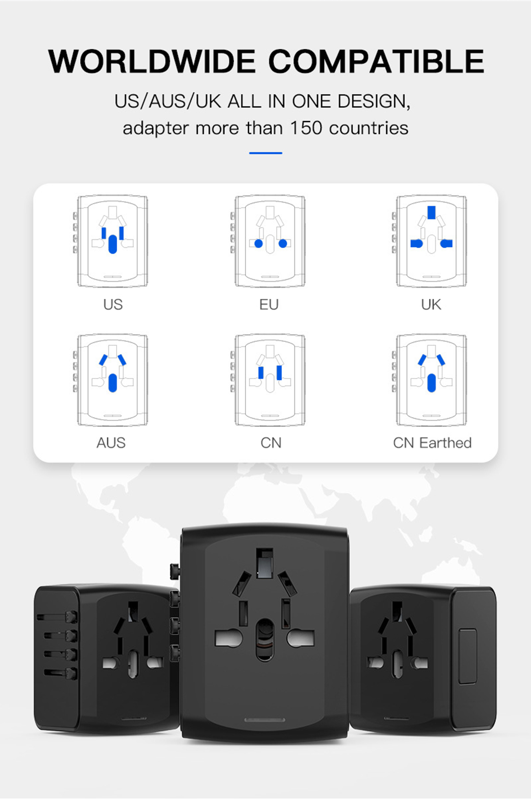 International travel adapter with 3 USB and Type C power adapters for fast charging EU/UK/US/Australia travel plugs