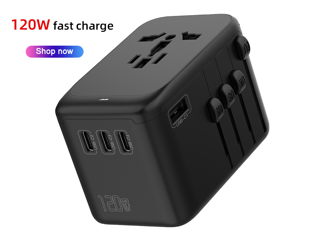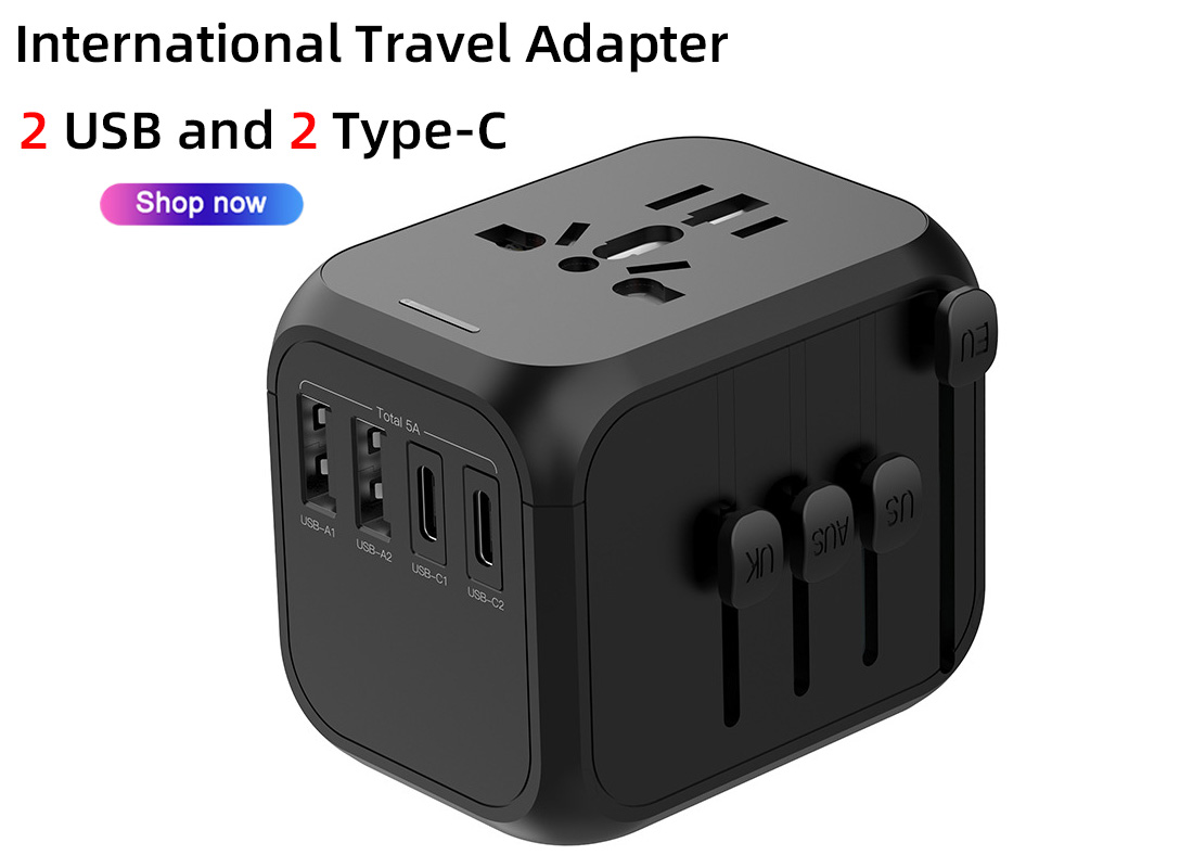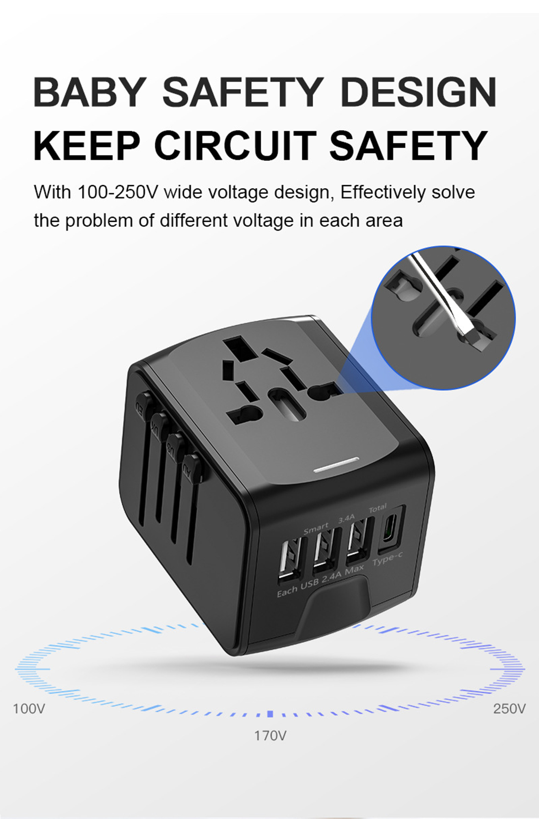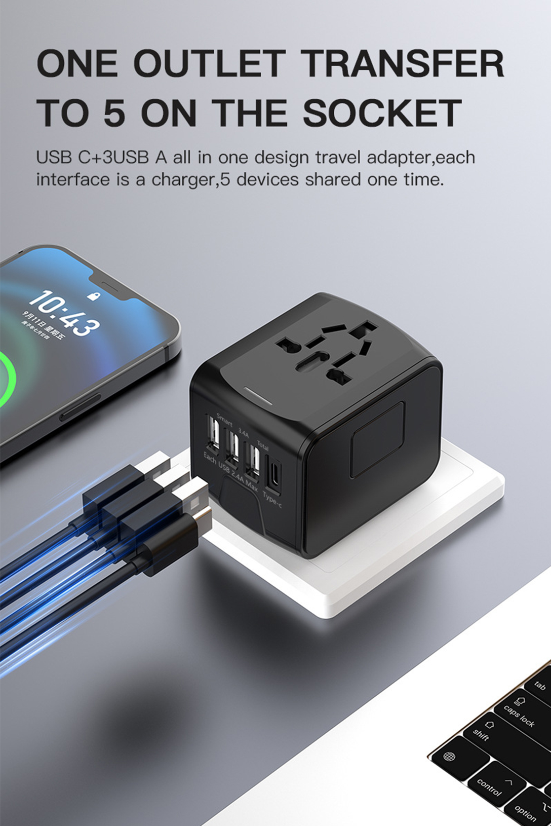 International travel adapter with 3 USB and Type C power adapters for fast charging EU/UK/US/Australia travel plugs