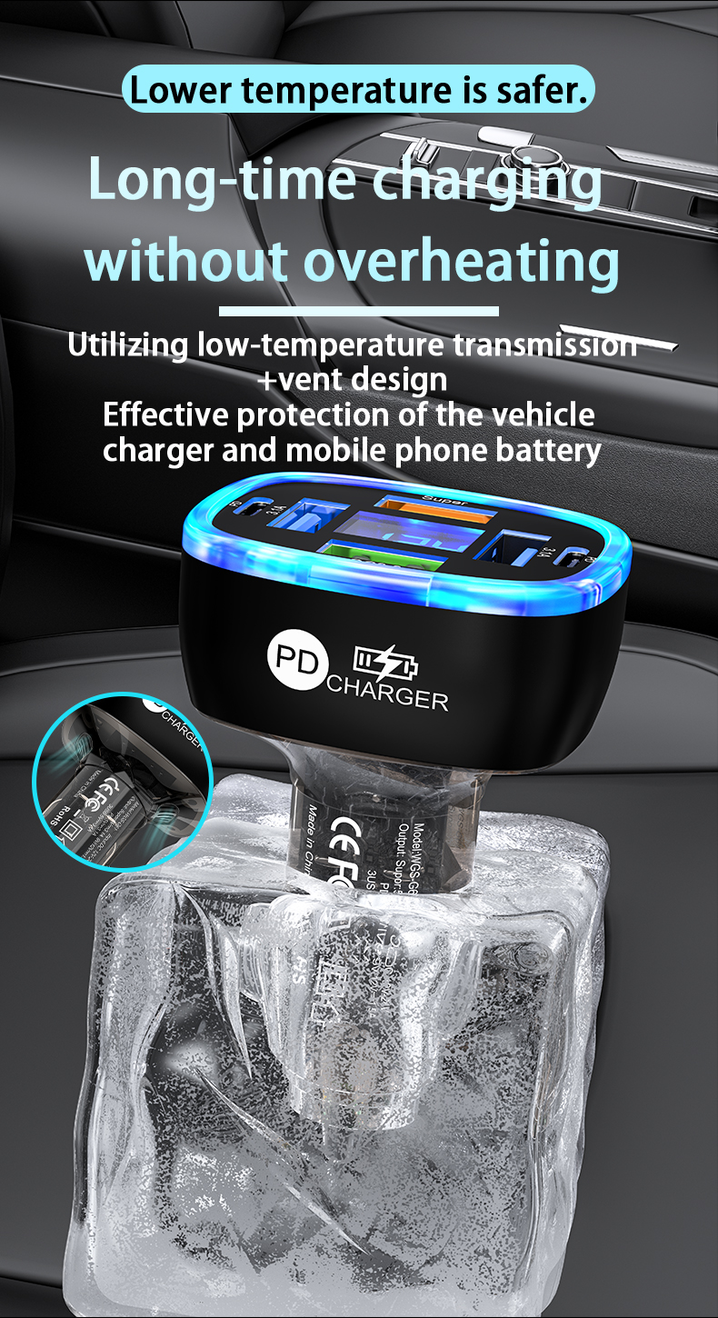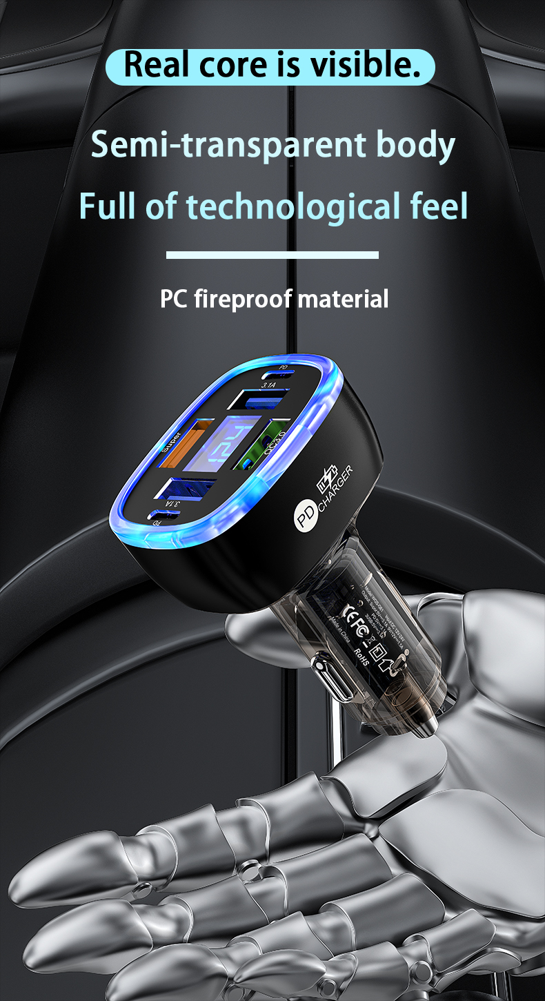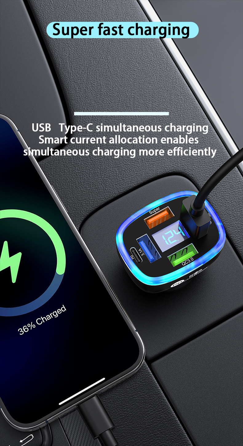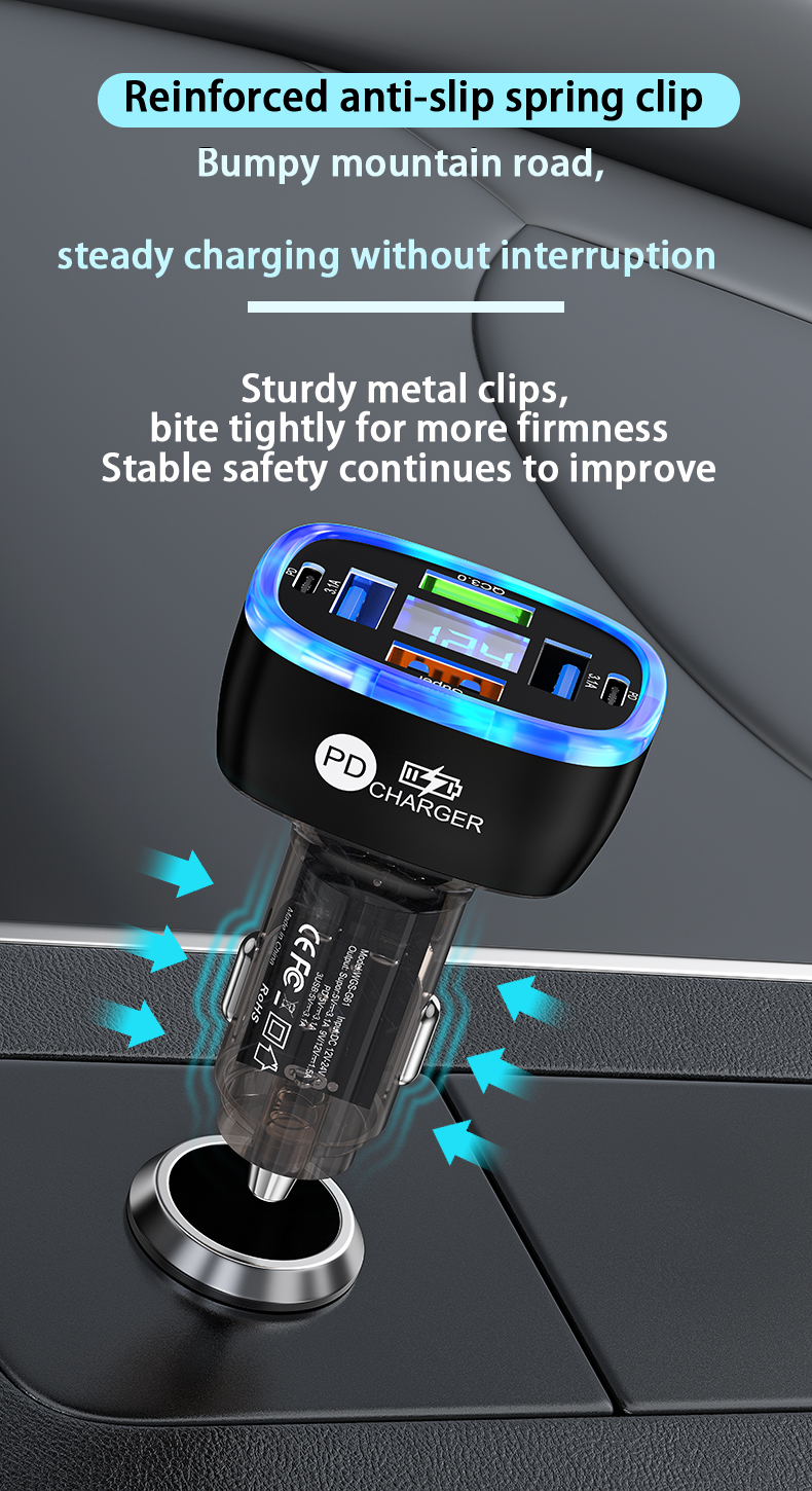 USB C Car Phone Charger 6 in 1 with Voltage Display Super Fast Charge Adapter for Samsung iPhone 16 15 Pro Max Oneplus